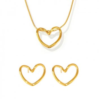 18K Gold-Plated Heart Pendant Necklace and Stud Earrings