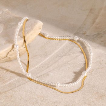 Elegant Gold-Plated Double-Layer Pearl Necklace for Women – Trendy & Hypoallergenic