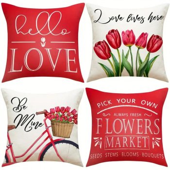 Valentine’s Day Decorative Pillowcase with Bicycle and Tulip Design